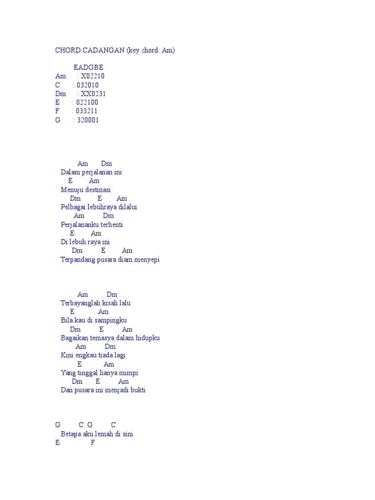Kemanakah hatimu kala aku menanti kata cinta mengalir air mata kala sepi tiba terasakan langkahmu makin laju melangkah batas rindu dan aku pun memburu mentari yang jauh berikanlah masa untukku mendendangkan kasih dalam syahdu tidak terhenti pilu di.