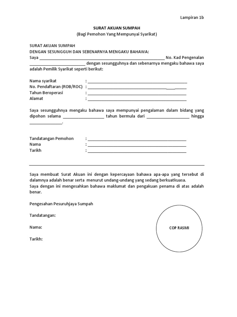 Resit asal wang cagaran hilang. Saya mengaku menerima resit pembayaran bagi permohonan a. Tujuan surat akuan pengenalan adalah satu dokumen perjalanan yang dikeluarkan kepada penduduk tetap malaysia yang tidak mempunyai taraf a. Surat akuan sumpah hendaklah dibuat di pesuruhanjaya sumpah yang diwartakan oleh kerajaan. 1234 selaku balu anak waris kepada bbbb, no.