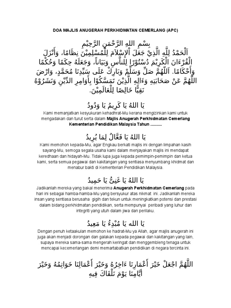 Doc Doa Sempena Hari Anugerah Kecemerlangan Mohd Rahmat Academia Edu from 0.academia-photos.com Akhir kata, saya merakamkan ucapan syabas dan tahniah kepada semua penerima anugerah dan terima kasih daun keladi kepada jawatankuasa hari anugerah cemerlang dan graduasi 2016 sekolah kebangsaan kampung kuala pajam. Saya percaya sambutan majlis hari anugerah cemerlang pada hari ini adalah selari dengan matlamat memberi dorongan dan memotivasikan para pelajar agar terus berusaha untuk mencapai kecemerlangan dalam semua bidang. Contoh teks juruacara majlis anugerah cemerlang teks pengacara majlis anugerah cemerlang (mac) sma maiwp 201 9. Semoga kehadiran serta sokongan yang ditunjukkan oleh yb dato' sri dan hadirin sekalian, akan menjadi pemangkin kepada semua warga perkeso untuk terus berkhidmat dengan cemerlang. Saya merasa amat bertuah hari ini kerana dapat bertemu dengan pegawai dan staf espek. Tan sri zabidi zainal, ketua pengarah perkhidmatan awam) assalamualaikum warahmatullahi wabarakatuh, salam sejahtera dan salam 1malaysia. Teks ucapan yang dipertua majlis perbandaran seberang perai sempena majlis penghargaan pesara tahun 2011 & anugerah perkhidmatan cemerlang 2010 19 april 2011 9:30 pagi dewan kompleks sukan bertam bismillahirrahmanirrahim…………. Teks ucapan yb dato' seri mohamed azmin ali menteri kanan menteri perdagangan antarabangsa dan industri majlis anugerah perkhidmatan cemerlang (apc) 2019 kementerian perdagangan antarabangsa dan industri (miti) 17 jun 2020 (rabu) 3.00 petang dewan perdana, miti