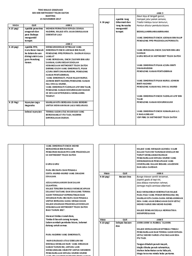 Dapatkan teks pengerusi majlis anugerah kecemerlangan. Rombongan pengantin perempuan yang diraikan. Pukul 3.00 petang bertempat di dewan icu, bangunan perdana putra Majlis merakamkan ucapan terima kasih, kepada ustaz mohamad zhahirin bin mohamad arshad , atas pimpinan doa sebentar tadi. Teks ucapan majlis anugerah kecemerlangan akademik 2014 1. Berikut adalah teks ucapan pengacara majlis bagi mesyuarat agung tahunan bakerp kali ke sembilan yang diadakan pada 23 jun 2011. Juga sesuai diubahsuai untuk program sambutan lain dan juga peringkat daerah serta kebangsaan. Tanpa membuang masa lagi, majlis diteruskan dengan penyampaian anugerah kecemerlangan dan penyampaian hadiah bagi pemenang pertandingan inovasi kolej vokasional juasseh bagi tahun 2017. Majlis anugerah kecemerlangan akademik sebelum majlis bermula mohon para hadirin penuhkan ruang tempat 4. Majlis anugerah kecemerlangan fakulti sains sosial gunaan tahun 2016. Rebutlah peluang yang ada di sekeliling kita, baik dalam bidang akademik mahupun bidang hubungan yang erat. Apabila diumumkan ketibaan para tetamu jemputan. Contoh teks terbaik dan lengkap dari mula program sehingga akhir penutup.
